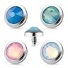 Simplitatea și frumusețea caracterizează pietrele de vârf dermal, și acest vârf, în mod special, este un exemplu bun. Este un oțel chirurgical foarte bine lustruit într-un ton argintiu clasic și mereu la modă. Poți cumpăra acest model și în varianta aurie, care-ți va oferi un aspect rafinat, probabil mai elegant decât cel cu bază argintie. Această bază este decorată cu un frumos opalit ce face această piesă un deliciu.