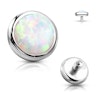 Este un vârf de dermal senzațional cu un design deosebit și un aspect super strălucitor datorită pietrei de opal încrustată pe care o are. Baza este argintie și după cum poți vedea în poză, piatra doar iese în relief puțin ca să arate practic vorbind, plat. Poți înșuruba frumoasa piatră în orice parte a corpului tău unde ai o ancoră dermală inserată ulterior, fără ați fie frică că va rămâne agățată în haine.