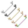 Ambele piercing-uri de corp sunt posibile cu bijuteria pe care ai făcut click. Te uiți la o bara cu un unghi de 90 de grade făcută din oțel chirurgical și decorată cu un disc plat la fiecare capăt. O poți obține în diferite culori, precum auriu sau multicolor. Depinde doar de tine!