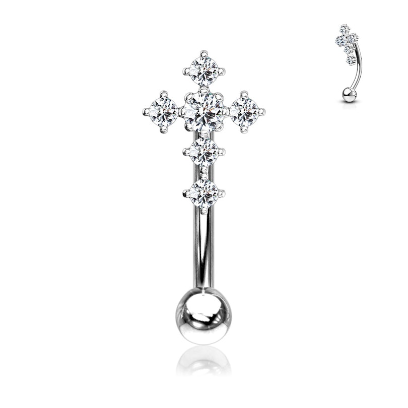 Această barbell curbată este făcută din oțel chirurgical și disponibil în trei culori diferite. Modelul argintiu este suflat cu rodiu în timp ce modelele aurii sunt placate cu aur de 14 carate. Singura diferență între ele este culoarea, sunt identice indiferent de dimensiuni și culorile pietrei.