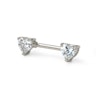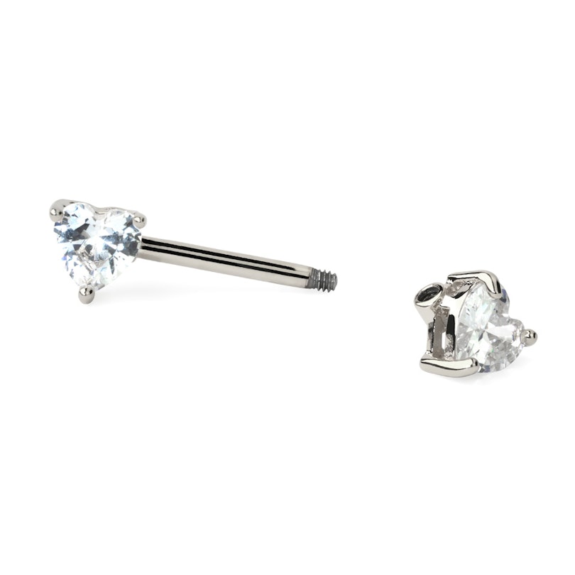 În poza prezentată vei vedea o bijuterie foarte delicată. Aceste tije drepte sunt făcute din oțel chirurgical prezentând cu două pietre de zirconiu cubic prinse în gheruțe. Poți avea aceste pietre în culoarea dorită de tine. Selecția de culori se aplică pentru tijă și pietrele în formă de inimă. Tu poți, de exemplu să alegi o tijă aurie sau aurie roze cu inimi albastre sau roșii. Ești liberă să combini aceste opțiuni după cum îți place.