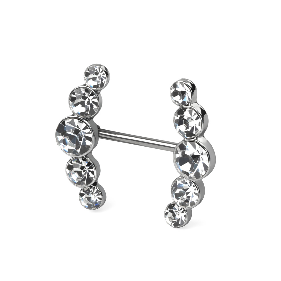 Acest barbell de sân consistă într-o bară dreaptă și o arcă de pietre verticală pe fiecare parte. Piatra din mijloc este mai mare, în timp ce alte pietre devin gradual mai mici spre capete. Rândul de pietre sunt ușor curbate, precum arcele care aproape înconjoară sfârcul.