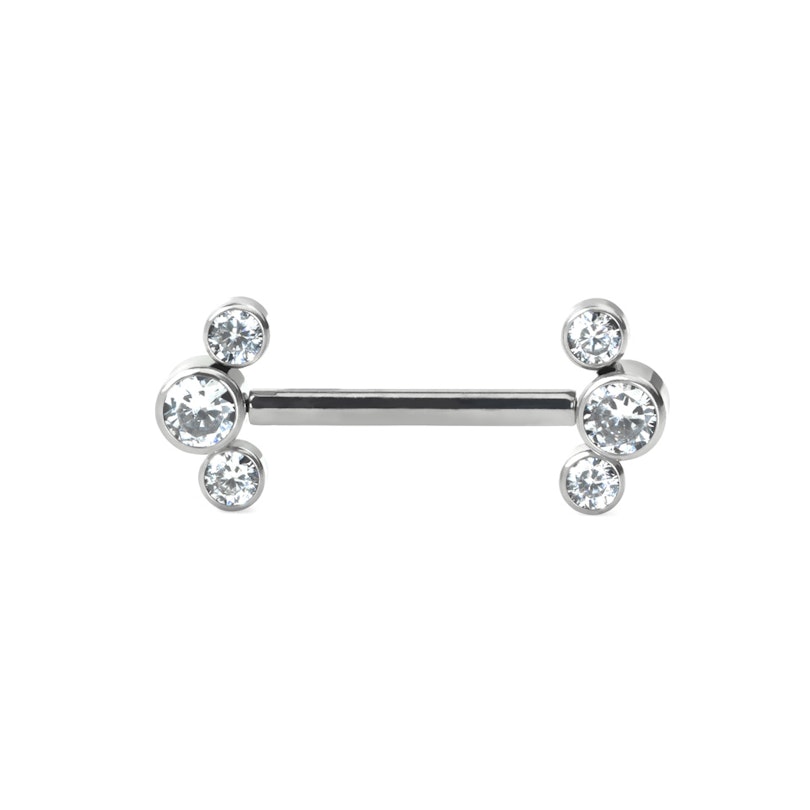 Nume: Barbell de sân fără filet cu 3 pietre de zirconiu la capete