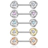 Aceastî bijuterie sexy și exclusivă va arată perfect în piercing-ul de sfârc. Bara dreaptă este făcută din oțel chirurgical. Este un mic trandafir făcut din alamă la fiecare capăt cu o piatră din zirconiu în centru. Toți trandafirii sunt placați cu un strat colorat; modelul argintiu are o culoare metalică, în timp ce aurul și auriul roz are un strat placat de aur de 14 carate.