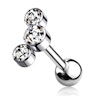 În partea din față, poți vedea trei mic pietre. Piatra din mijloc este ușor mai mare decât celelalte două, care sunt de aceeași mărime. Oferă un efect bun când te uiți la barbell ca la un întreg. Alege din multiple culori de pietre.