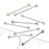 Dacă ai un piercing industrial în ureche, avem o bijuterie pentru tine aici. Bijuteria consist dintr-o bară dreaptă, după cum știi, cu două bile – una la fiecare capăt. În mijlocul barei, este sculptată o mica depresiune, unde 8 mici pietre cu o precizie perfecționistă felul cum sunt atașate. Barbell este făcută este făcută din oțel chirurgical și este disponibilă în diferite culori, la fel fiind și pietrele. Așadar, doar în versiunea de culoare argintie strălucitoare poate fi alese diverse culori ale pietrelor. Cu alte cuvinte, tijele colorate pot fi alese doar cu pietre transparente.