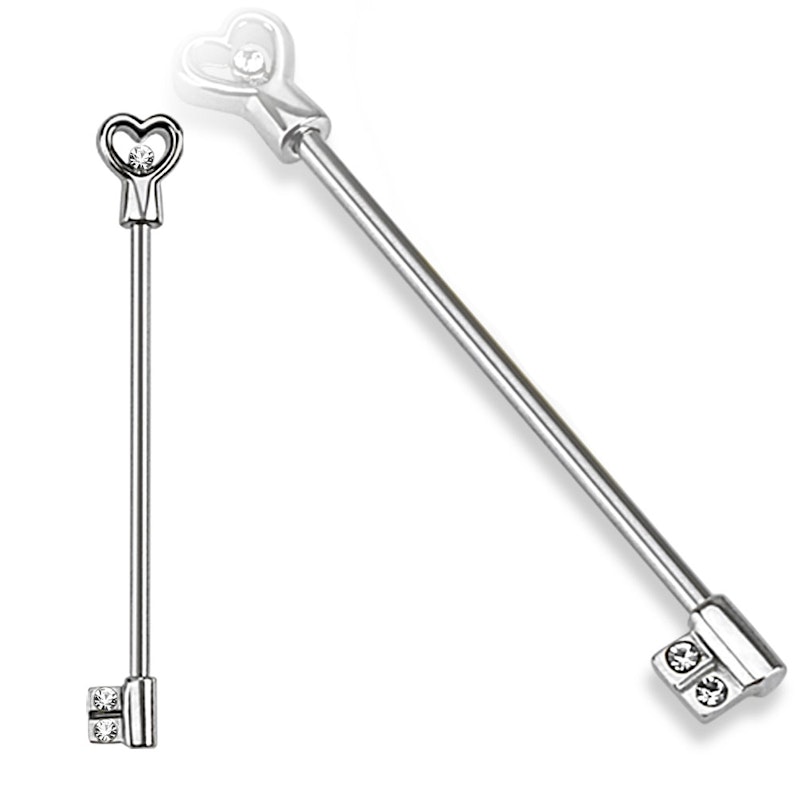 Subțire, lucioasă și elegantă pentru ureche. Designul este incredibil de dulce și feminin, cu o tijă care simbolizează o cheie cu un mâner în formă de inimă. Există două pietre sclipitoare în partea de jos a cheii și o singură piatră în inimioară. Pietricelele sunt disponibile în nuanțe transparente, roz sau turcoaz, în funcție de gust și de plăcere, toate cele trei pietricele de pe tijă vor avea culoarea pe care o alegeți.