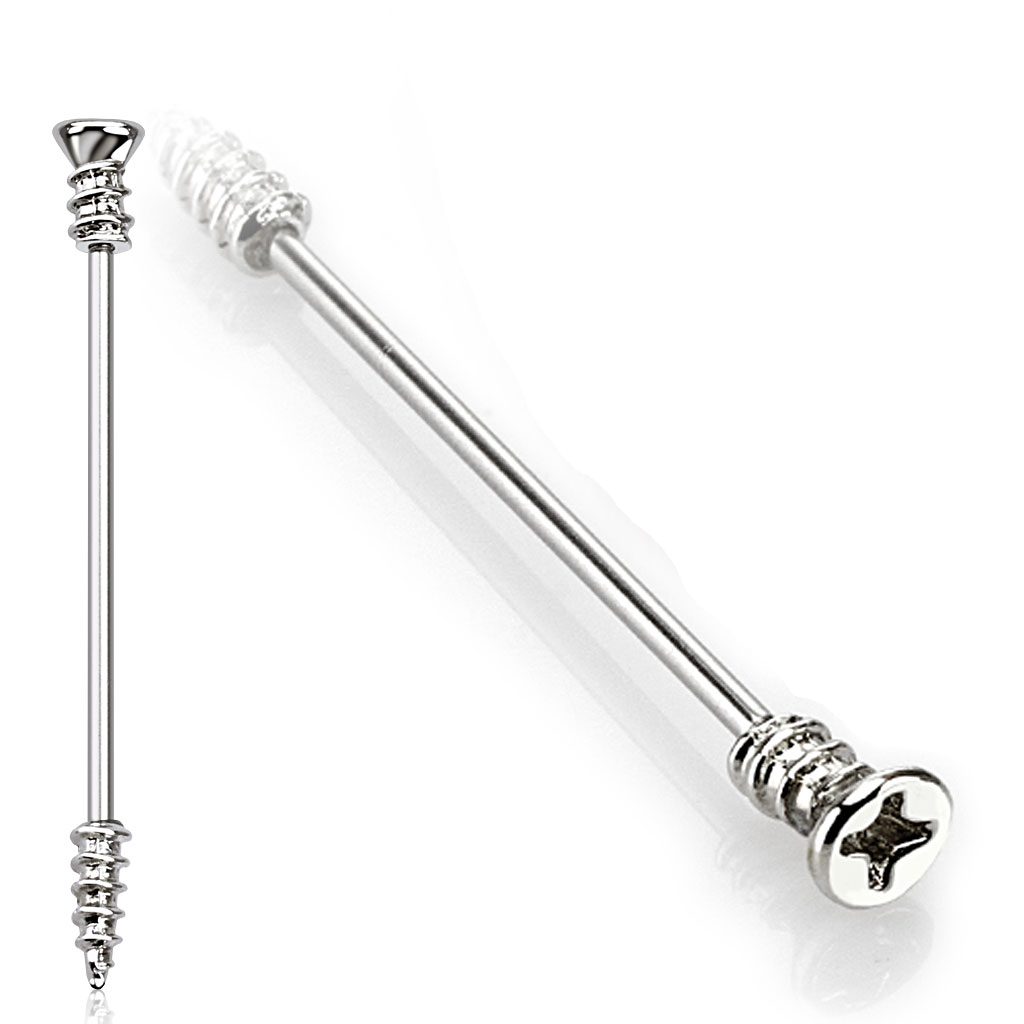 Un piercing în stil punk, autentic, cu o bară simplă care se plasează între cele două perforații surprinde prin cele două piese situate la capete și care imită capătul și vârful unui șurub.