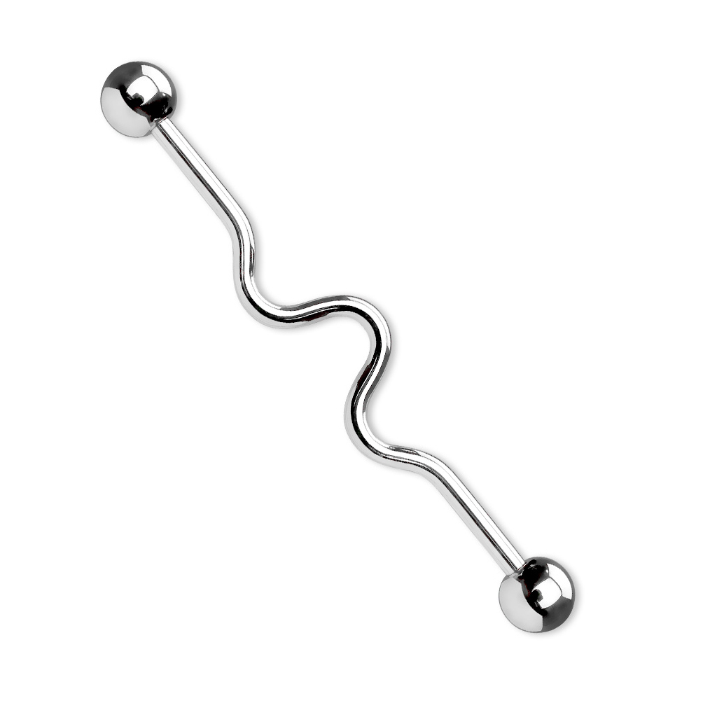 O tijă industrială superbă, cu două ondulații în centru și disponibilă în mai multe culori, toate incredibile. Această tijă industrială arată cel mai bine în ureche. Pentru a o prinde trebuie să deșurubezi bilele din ambele extreme ale tijei și să o introduci prin ambele performații. O dată pusă, mai rămâne doar să reînșurubezi bilele. Bijuteria este făcută din otel chirurgical și este disponibilă în următoarele culori: auriu, negru, albastru, galben și multicolor. În ciuda designului frumos și ondulat, va rămâne acolo unde o inserezi, fiind astfel o bijuterie foarte comodă.