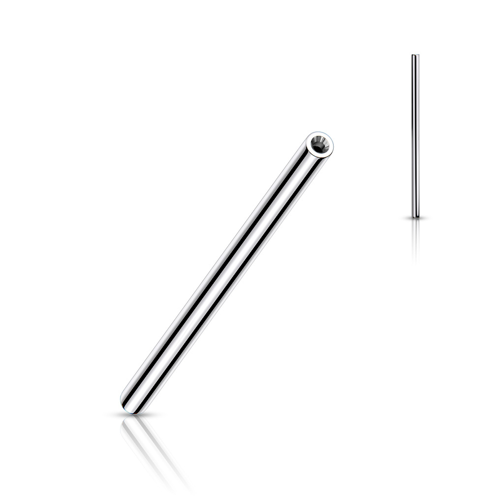 Acestă bară îți dă libertatea de a crea piesele pe care le dorești. Mai întâi, alege-ți măsura potrivită din multitudinea de dimensiuni disponibile. Apoi, găsește vârfuri push-in pe care să le combini cu bară din imagine. Bijuteriile fără fir se inserează foarte rapid, pentru că nu e nevoie să le înșurubezi. În plus, această piesă este din titan G23, cel mai bun material pentruu piercing-uri. Este foarte potrivit pentru piercinguri noi și cei cu alergii la nichel.