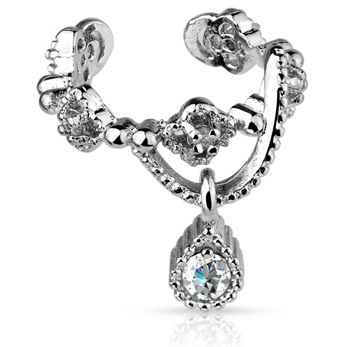 E o sărbătoare adevărată pentru ureche când o răsfățați cu această cătușă de ureche frumoasă și elegantă care poate fi folosit fără un piercing propriu-zis. Micuța și drăguța cătușă de ureche trebuie doar să fie strânsă în jurul marginii exterioare a urechii, după care va sta fixată singură în clemele ei. Este perfectă dacă nu ai piercing pe marginea urechii sau dacă dorești să probezi un piercing înainte de a lua decizia finală de îți face o gaură acolo.