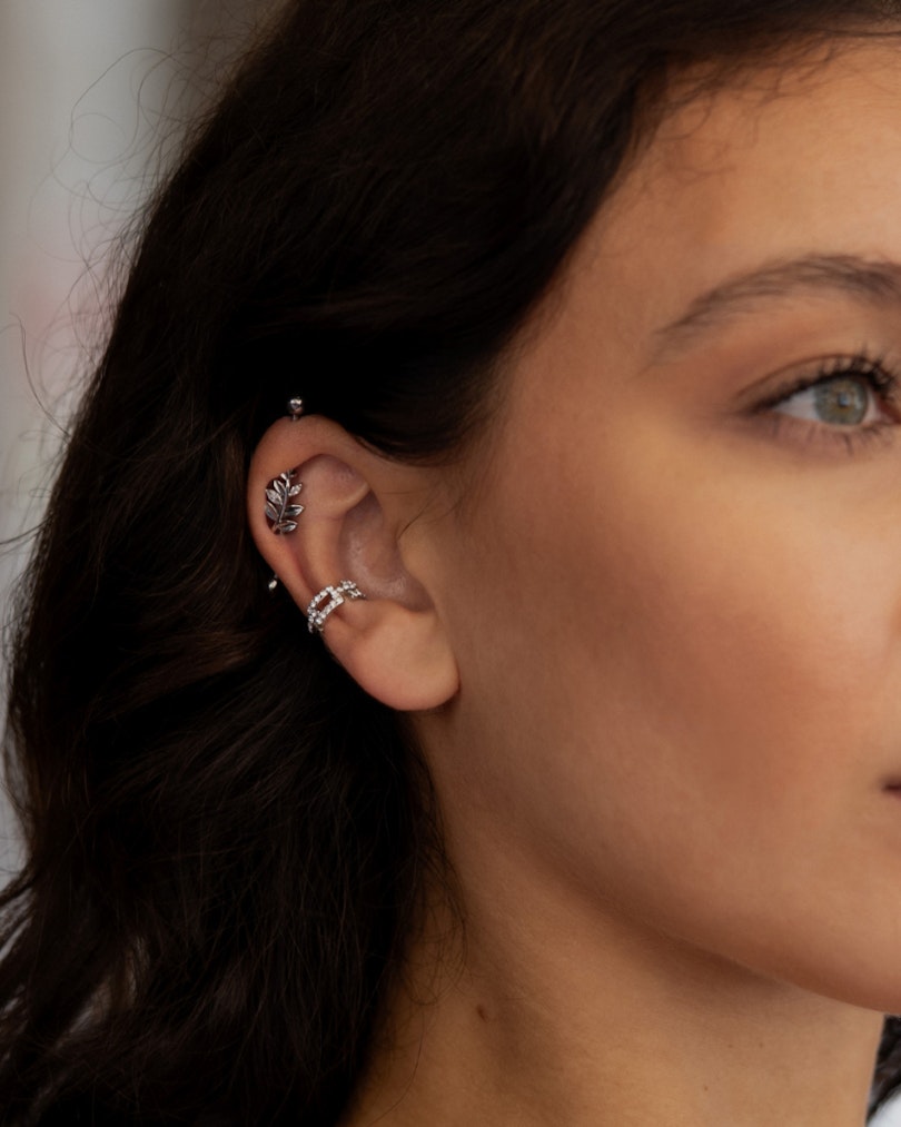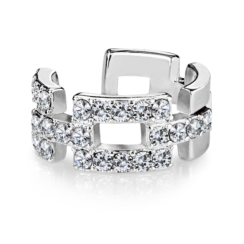 Dacă vrei să vezi cum ai arăta cu un piercing de ureche, acest clip este perfect pentru tine. Este o cătușă de ureche care te scapă de bătaia de cap a unui piercing cu acul. E foarte ușor de pus: trebuie doar să apropii capetele până când se potrivesc pe ureche. Bijuteria este din alamă și a fost suflată în diferite materiale - poți alege un finisaj argintiu, auriu sau auriu roze. Designul constă în multe dreptunghiuri plasate unul lângă celălalt care seamănă cu un lanț. Pe marginea exterioară, sunt până la cinci pietre pe fiecare dreptunghi - nu vei rămâne fără pietre cu această cătușă de ureche strălucitoare.