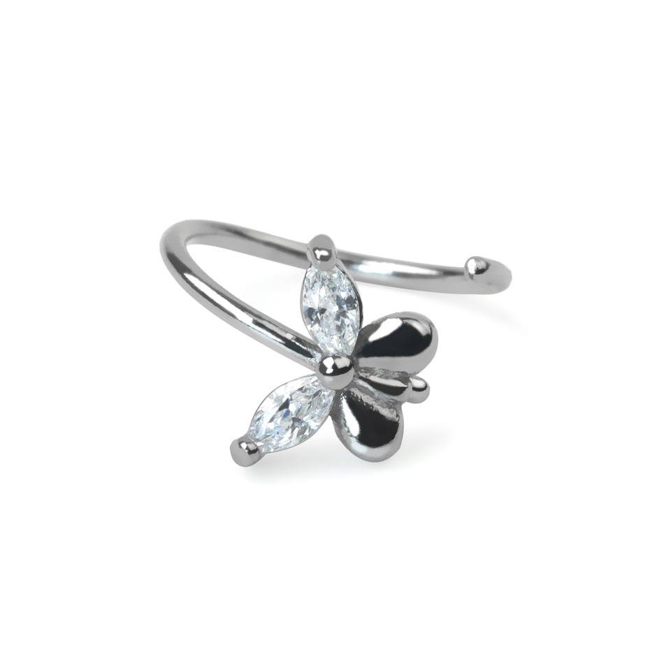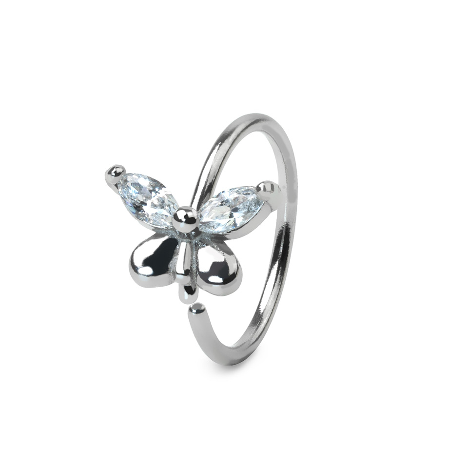 Cercelul are un fir subțire (0.8 mm) și un diametru mic, așa că acest fluture încântător va arăta frumos în nasul tău sau în piercingurile de ureche, inclusiv, dar nu numai, în piecingurile de nară, tragus și helix.