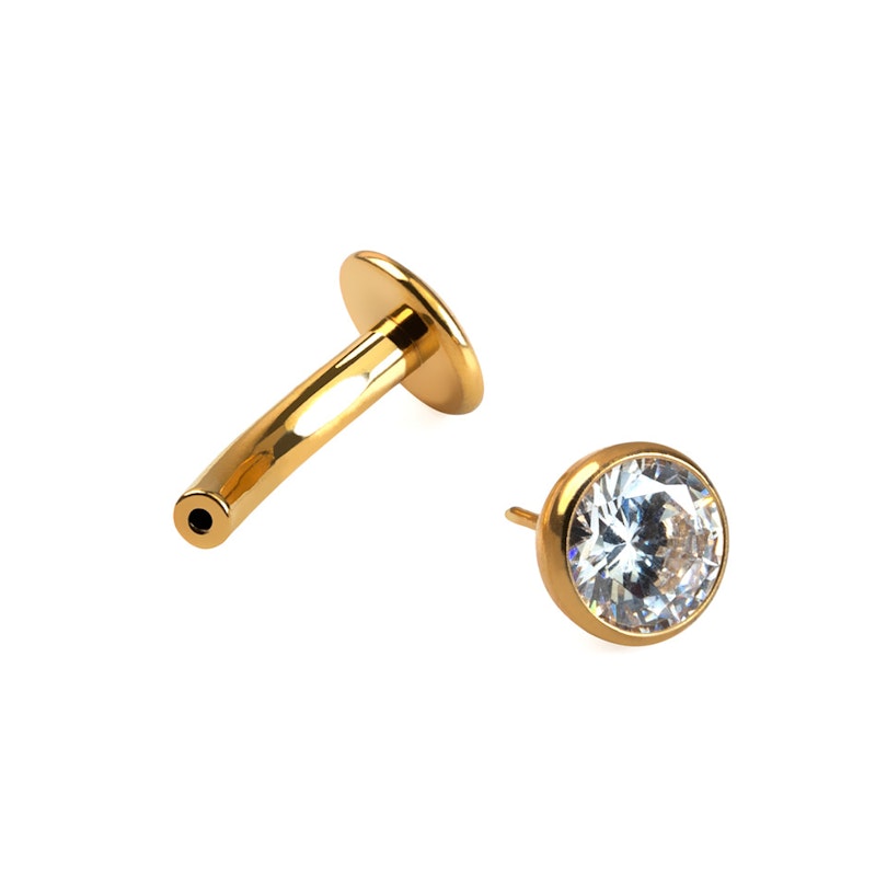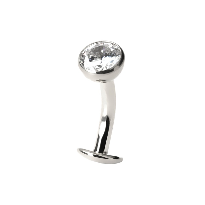 Acest cercel de buric reverse are o piatră de zirconiu încrustată în bila superioară, care stă deasupra buricului. Celălalt capăt al barbell-ului are un disc plat care stă foarte discret în buricul tău, dând impresia că bijuteria plutește.