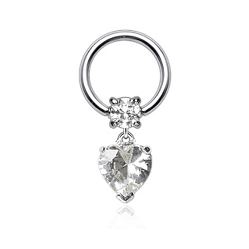 Acesta este un cercel super drăguț, cu o inimă minunată ca pandantiv. Acesta va fi ideal pentru piercing-ul tău de helix sau ca piercing intim unde va arăta, de asemenea, super sexy. Cercelul este creat din oțel chirurgical, în timp ce inima este o piatră transparentă fațetată. Când spunem despre o piatră că este fațetată, înseamnă că are multe muchii la fel ca un diamant, o formă ce permite luminii să se reflecte în ea din toate unghiurile.