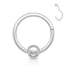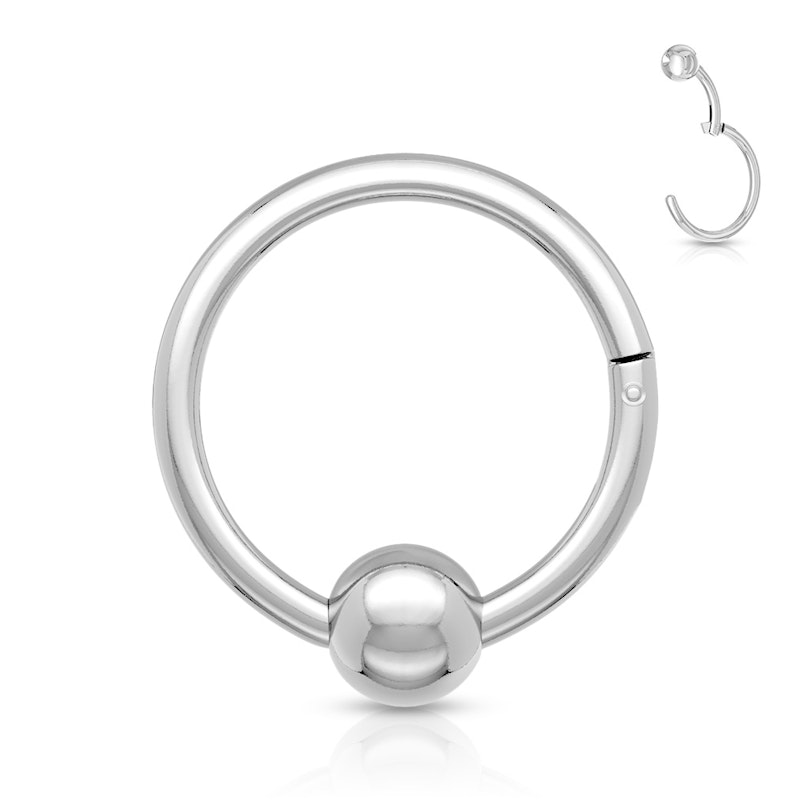 Un cercel captiv cu mărgea normal (CBR) sau cercei cu închidere bilă, este bila care se scoate și inserează pentru a fi deschis sau închis. Dar, acesta nu este cazul aici. În această bijuterie, bila este o parte din cercel. Bila este atașată de o bară cu balama atașată de restul cercelului. Această metodă îți permite să deschizi și închizi cercelul cu ușurință, mai exact printr-un singur click. Și să-l închizi, trebuie doar să împingi balamaua - și capătul cercelului va intra într-o mică adâncitură.