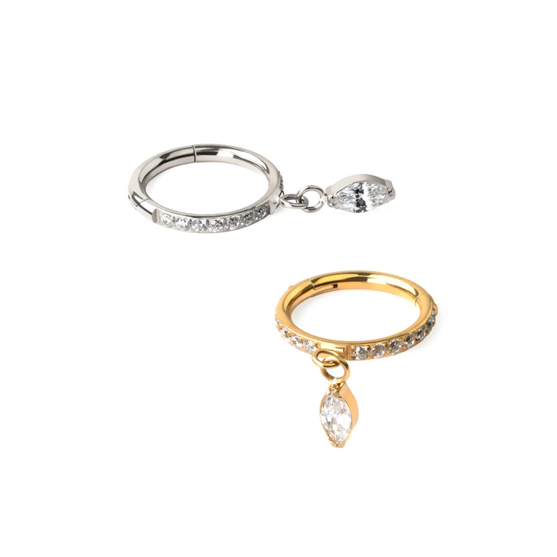 Pentru că are balama, cercelul este ușor de deschis și închis în piercing. Fiind din titan, este hipoalergenic și durabil.