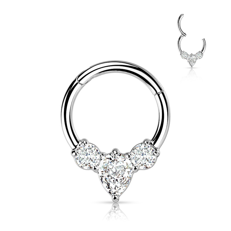 Aceste pietre sunt orientate frontal, cercelul fiind perfect pentru bijuterii de septum și anumite piercing-uri de urechi, cum ar fi daith sau tragus.