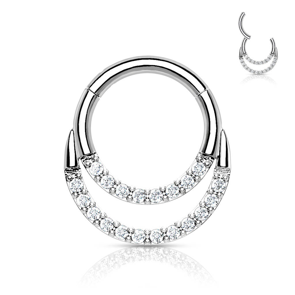 Nume: Cercel cu balama din titan cu două rânduri de pietre
