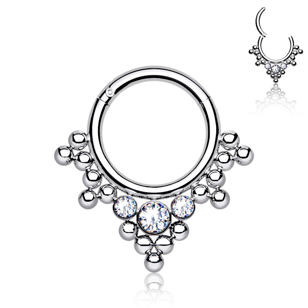 Nume: Cercel cu balama din titan cu mărgele grupate și pietre