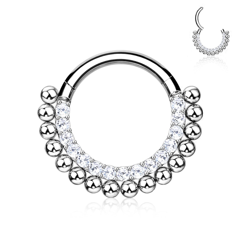 Nume: Cercel cu balama din titan cu pietre și biluțe