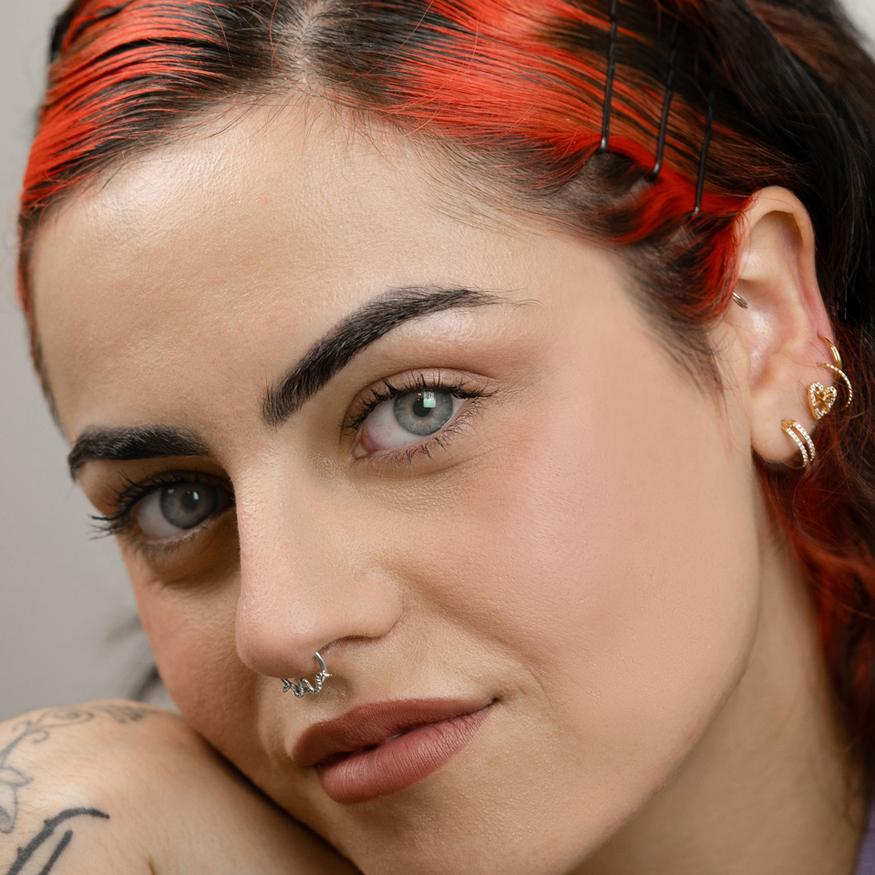 Un alt detaliu pe care să-l iei în considerare este dimensiunea cercelului. Grosimea firului este de 16g (1,2 mm) și este disponibil în diametrul de 8 mm și 10 mm. Ești liber să folosești acest cercel în orice tip de piercing, acolo unde se potrivesc designul și dimensiunea.