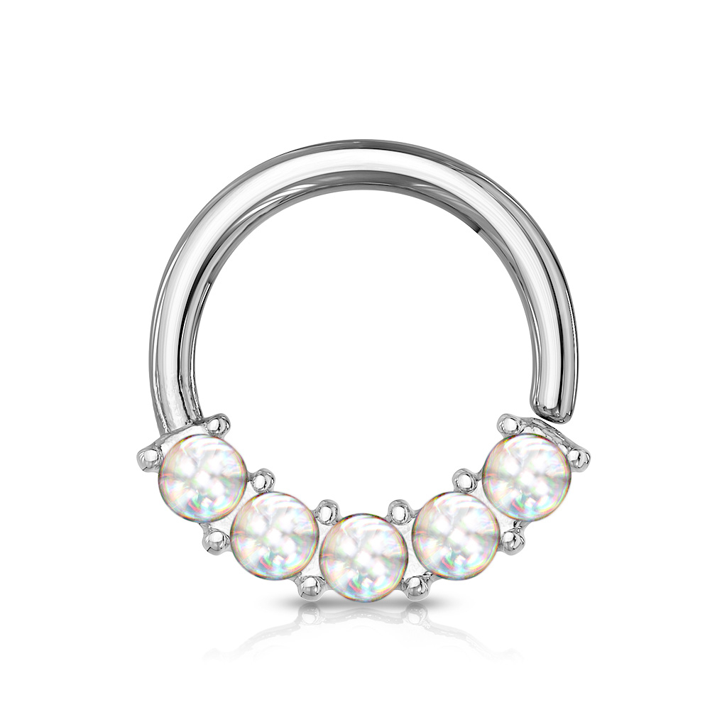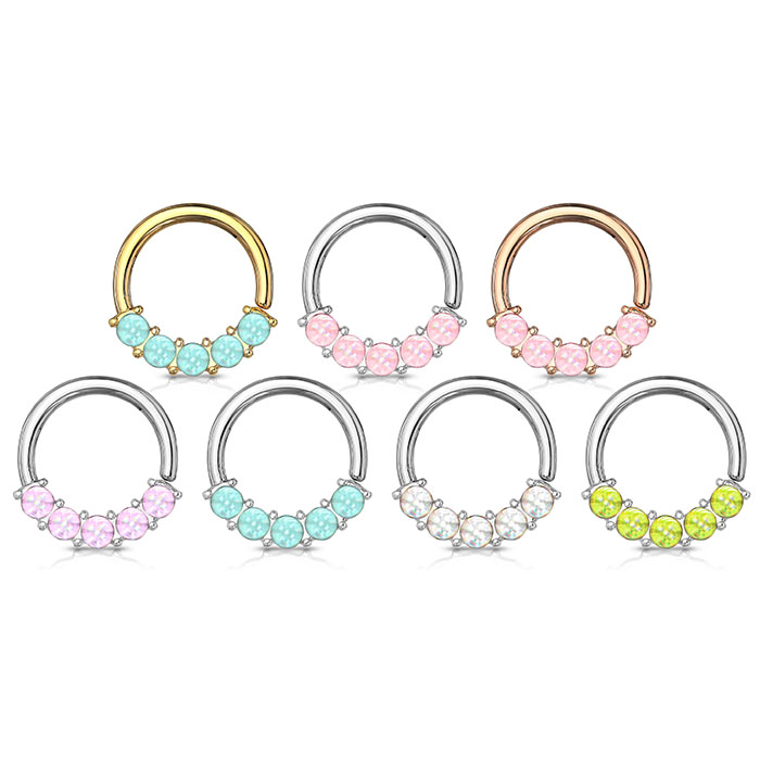 Cercelul fără balama se răsucește pentru a se deschide, ceea ce îl face incredibil de ușor de folosit. În plus, mai poți alege și culoarea celor cinci pietre reflectorizante din multe opțiuni diferite.