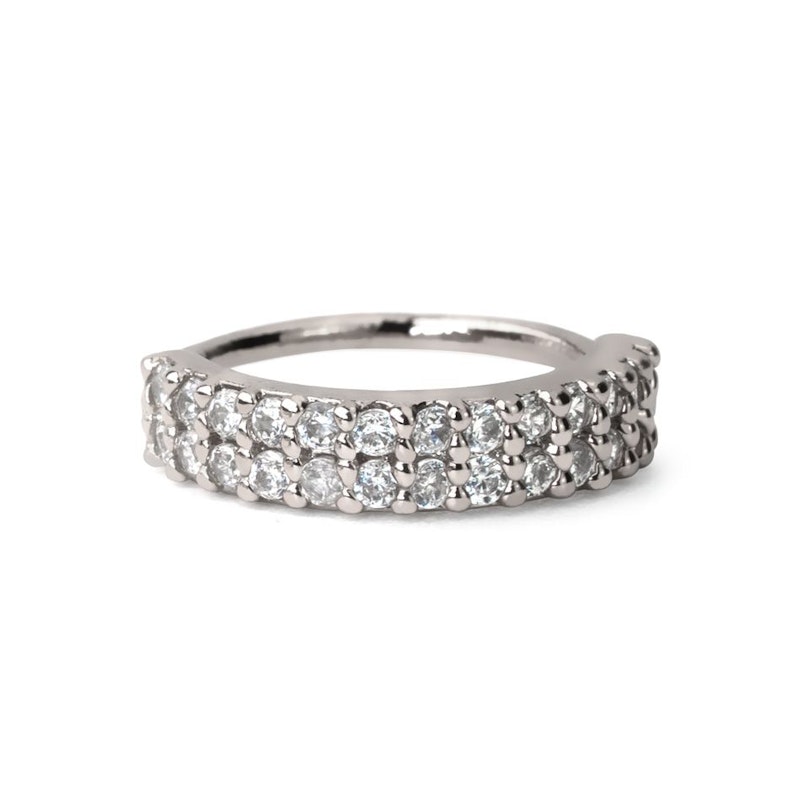Cercelul prezintă nu mai puțin de două rânduri de pietre care acoperă aproape jumătate de cercel - 26 de mici pietre transparente în total. Pe cealaltă parte a cercelului ar trebui să stea în piercing-ul tău.