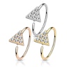 În partea din față, cercelul este decorat cu un triunghi și multe pietre transparente care strălucesc puternic.