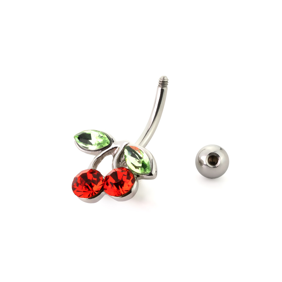 Această bijuterie nu are un pandantiv liber, frumoasele cireșe roșii vin pur și simplu în locul bilei inferioare a piercing-ului. Acest lucru face ca acest piercing ombilical să fie foarte potrivit pentru utilizarea de zi cu zi, deoarece nu are nici un pandantiv lung atârnat care să se poată agăța în haine.