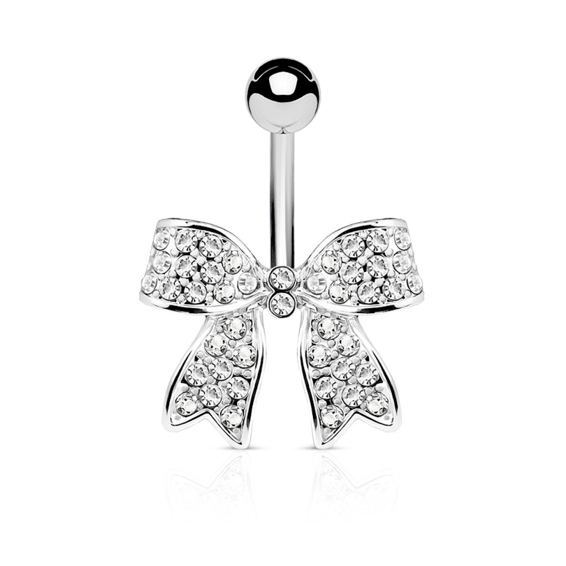 Acest cercel de buric încântător are forma frumoasă a unei fundițe. Tija și bila sunt din oțel inoxidabil, iar fundița este din alamă. Fundița are încrustate pietre delicate din zirconiu, cu două pietre mari în centru. Are un fir extern, adică atunci când îl fixezi în piercing, trebuie doar să înșurubezi bila micuță în tijă. Această bijuterie încântătoare este o piesă fun pe care să o adaugi în colecția ta de bijuterii de piercing.