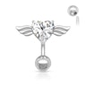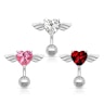 Cumpară unul dintre cele mai populare simboluri pentru tatuaje chiar pentru cercelul tau de buric. Vorbim despre inima înaripată desigur. :-) Acest cercel de buric este facut din oțel chirurgical, cel mai folosit material în industria body piercing-ului deoarece nu eliberează particole de nichel. Acest cercel de buric are o piatră frumoasă cu tăietură pe fața în centru și este disponibilă în mai multe culori.