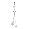 Un cercel ombilical cu adevărat exclusivist cu lănțișoare lungi și detalii frumoase din pietre transparente. Pandantivul este decorat cu o inimă frumoasă dintr-o piatră transparentă. Sub această inimă există un alt cercel, la care sunt atașate cele două lănțișoare lungi, independente unul de celălalt. Lănțișoarele nu sunt lipite și, prin urmare, se pot mișca liber odată cu mișcările corpului.