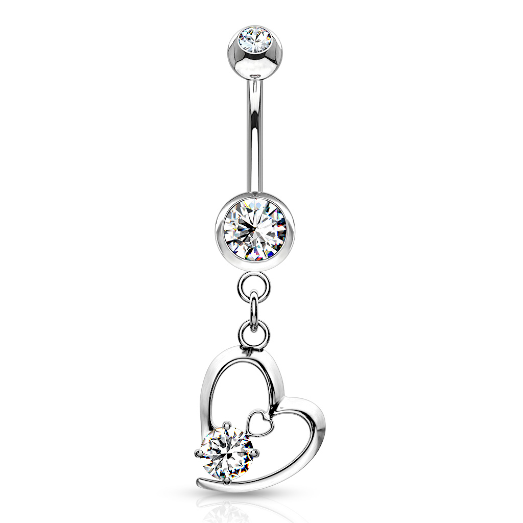Cerceii de buric cu inimă sunt clasici în lumea piercing-urilor sweet. Acest model cu frumosul pandantiv nu este o excepție.