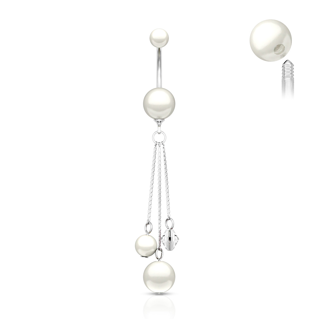 Acesta este un cercel de buric este făcut din oțel chirurgical și are perle din acrilic.