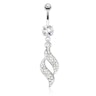 Îți plac bijuteriile ombilicale cu un stil atemporal? Atunci, ai acum șansa de a arăta acest lucru sub forma acestui minunat piercing ombilical cu o frumoasă flacără a pasiunii în pandantiv. Simbolismul celor două flăcări care se îngemănează este deschis oricărei interpretări și este și atemporal. Astfel, flăcările pot simboliza orice problemă despre care sunteți pasionat și, astfel, bijuteria poate avea un înțeles pur personal pentru dvs. Alternativ, în mod special, flăcările pot simboliza și flacăra iubirii, care este împărtășită de doi oameni într-o îmbrățișare strânsă. Conceptul este, așa cum am spus, complet deschis la interpretări și îi poate fi atribuit unui sens complet unic și ales de persoana care va purta bijuteria.