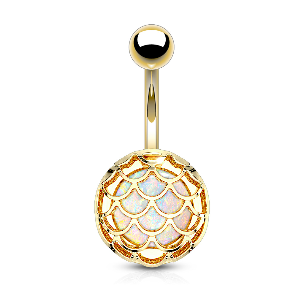Nume: Cercel de buric cu piatră de opal încapsulată într-un design cu solzi