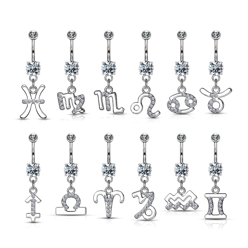 Cumpără acest fabulos piercing de buric cu semnul tău zodiacal ca pandantiv. Poți alege zodia ta sau zodia persoanei iubite. Toate sunt decorate cu pietre frumoase transparente. Alege-ți semnul zodiacal de mai sus.