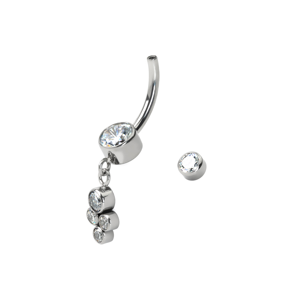 Nume: Cercel de buric din titan cu pietre încrustate care atârnă