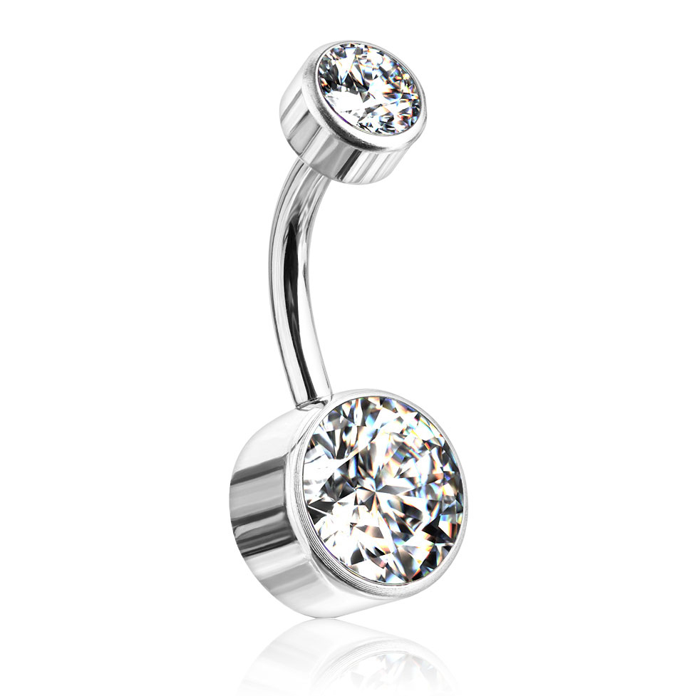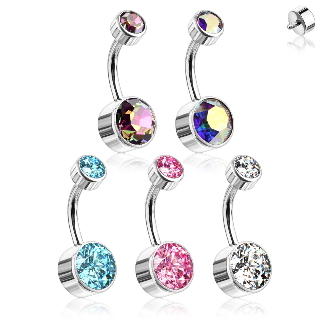 Adițional materialului, această piesă de bijuterie are o altă fantastică caracteristică -- felul în care bila este înșurubată în bară. În bijuteriile normale, bila este înșurubată peste tijă, ca să spunem așa, filetul stă în exteriorul tijei. În acest cercel de buric, bila este înșurubată în tijă ce va preveni zgârieturile în interiorul piercing-ului tău cu un filet ascuțit când îl inserezi. Bilele acestui cercel de buric sunt plate în partea din spate, ceea ce înseamnă că se vor potrivi mai bine pe pielea ta. Așadar arată puțin mai mic decât este cu adevărat. Cercelul de buric este diferit în diferite culori de pietre, din care poți alege în funcție de personalitatea sau outfitul tău.