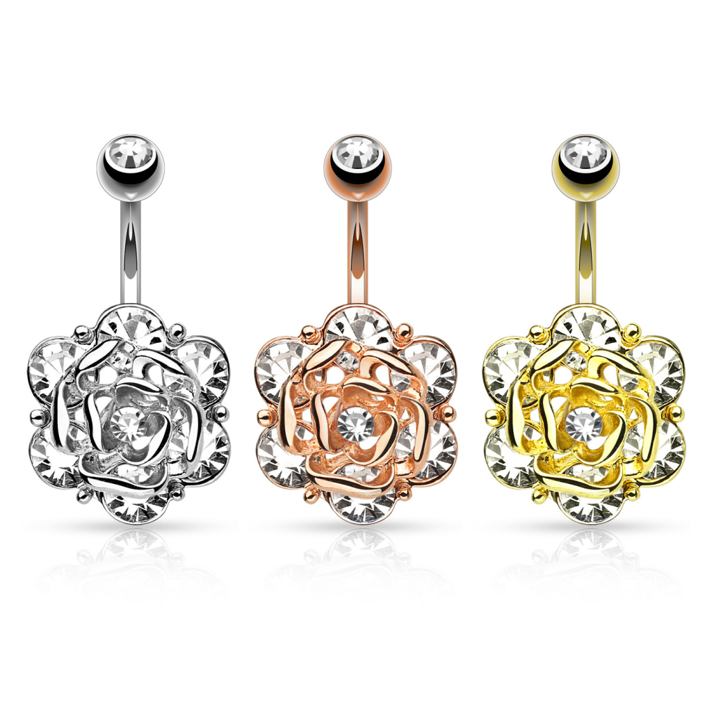 Dacă esti în cautara unei bijuterii stralucitoare atunci esti în locul potrivit. Aici vei gasi un cercel de buric cu o floare impozantă, ce va straluci oriunde o vei purta.