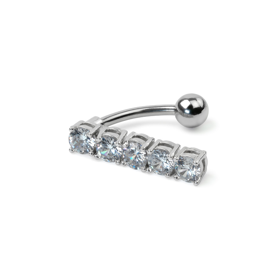 Cercelul-ul din poza este un piercing de buric răsucit, asta înseama că în comparație cu cerceii de buric normali, acesta atarnă de bila din vârf.