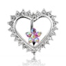Acest cercel de buric este făcut din oțel chirurgical și consistă într-o inimă goală decorată cu multe pietre albe. În centrul inimii este o frumoasă floare cu o floare în culorile aurorei boreale care reflectă culorile curcubeului când este expus la lumină. Această floare este de asemenea o bilă de jos în cercelul de buric deci este posibil să o înșurubezi și deșurubezi.