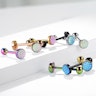 În poza alăturată poți vedea un cercel foarte original. Cercelul se prezintă o bilă în vârf cu o suprafață cu nuanțe care se schimbă și arată ca niște solzi. Solzii sunt făcuți din răsină care oferă nuanțele în funcție de lumină. Dacă alegi modelul cu solzi roz, vei găsi nuanțe diferite în funcție de mișcare. În plus, mai poți alege din diferite tije colorate - toate adăugând un cercel diferit și un touch fresh.