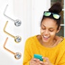 Acestă bijuterie pin fabuloasă în formă de L, un tip de stud între un stud de nas normal și un șurub de nas. Are nevoie de puțină răbdare să-l pui în piercing-ul tău, dar se pregătește perfect. Această bijuterie are cele mai bune caracteristici a două tipuri de stud deoarece este ușor de pus sau de scos și mulțumită designului său, se potrivește perfect piercing-ului tău de nas fără nici un risc de a scăpa.