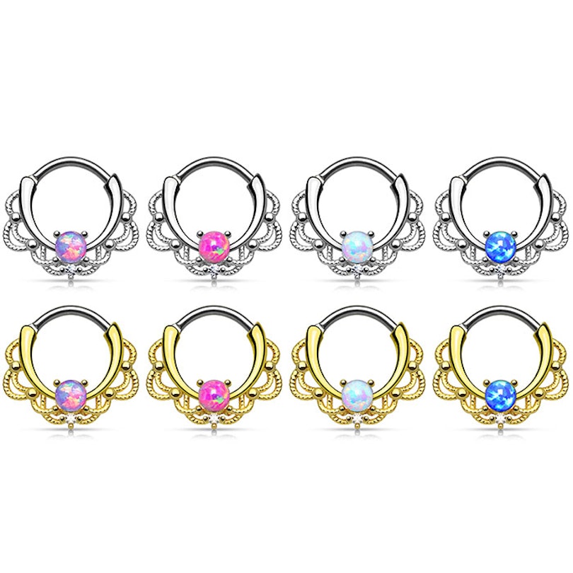 Dacă ești în căutarea unei bijuterii frumoase cu stil și peronalitate, aruncă o privire acestui cercel de sept. Are un mecanism clicker deci este ușor de deschis și de închis: bara se închide cu un click care se aude. Este rotund ca un cercel ce îl face foarte popular în bijuteriile de sept. Piatra stă sub făcându-l să iasă în evidență și mai mult.