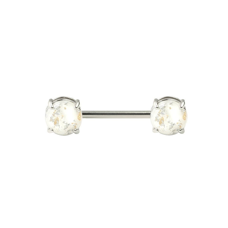 Barbell dreaptă este făcută din oțel chirurgical și bilele legate de filet sunt detașabile și unde pietrele stau sunt făcute din alamă. Sunt suflate cu rodiu să se potrivească cu barbell elegantă și polișată. Culoarea argintie deschisă a barei este perfectă pentru pietrele drăguțe pe care le are.