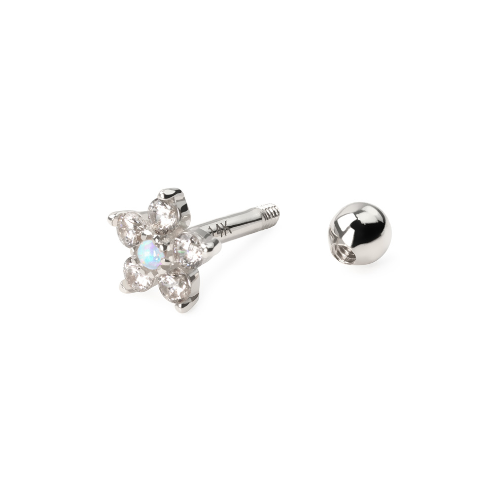 Nume: Cercel de ureche din aur de 14k cu floare și piatră de opal