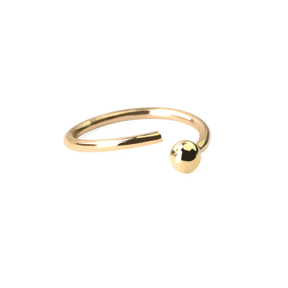 Un frumos inel de piercing pentru ureche, cu o finisare solidă și dimensiunea ideală. Datorită îndoirii laterale a inelului, poți să-l introduci foarte ușor și să-l pliezi înapoi păstrând forma rotundă până când tija se aliniază cu bila fixă.