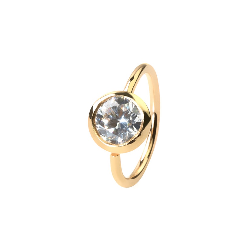 Îți prezentăm un cercel simplu dar original făcut din aur de 14 carate pentru tine deoarece îți plac bijuteriile de cea mai bună calitate. Acest cercel are o mărime de 20g (0.8 mm) și un diametru de 5/16 inches (8 mm). Bila este o frumoasă piatră de cristal ținută în structură de o concavă jumătate. Bila este fixată la un capăt al cercelului, deci nu trebuie să-ți faci griji că îl vei pierde. Răsucește capetele și glisează-l în piercing-ul tău și apoi împinge-l să-l închizi. Este repede și ușor.